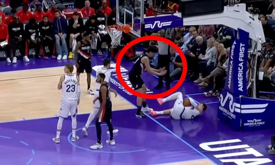 事件发生在比赛的第二节剩余6分57秒,当时杨瀚森在一次拼抢进攻篮板时动作过大,将爵士队的菲利波夫斯基撞倒在地,裁判随即鸣哨判其犯规。出于习惯与本能,杨瀚森第一时间伸出手,试图将倒地的对手拉起来,这是一个在CBA或是国际赛场上常见的友好举动。然而,菲利波夫斯基并未领情,直接无视了他伸出的手。与此同时,四名爵士队球员迅速围拢过来,一边将杨瀚森与自己的队友隔开,一边合力将菲利波夫斯基扶起。这个看似短暂的球场瞬间,却充满了NBA江湖的含义。杨瀚森友善的举动在这里遭到了明确的拒绝,场面一度显得有些尴尬,也让他直面了两种不同篮球文化之间的差异。